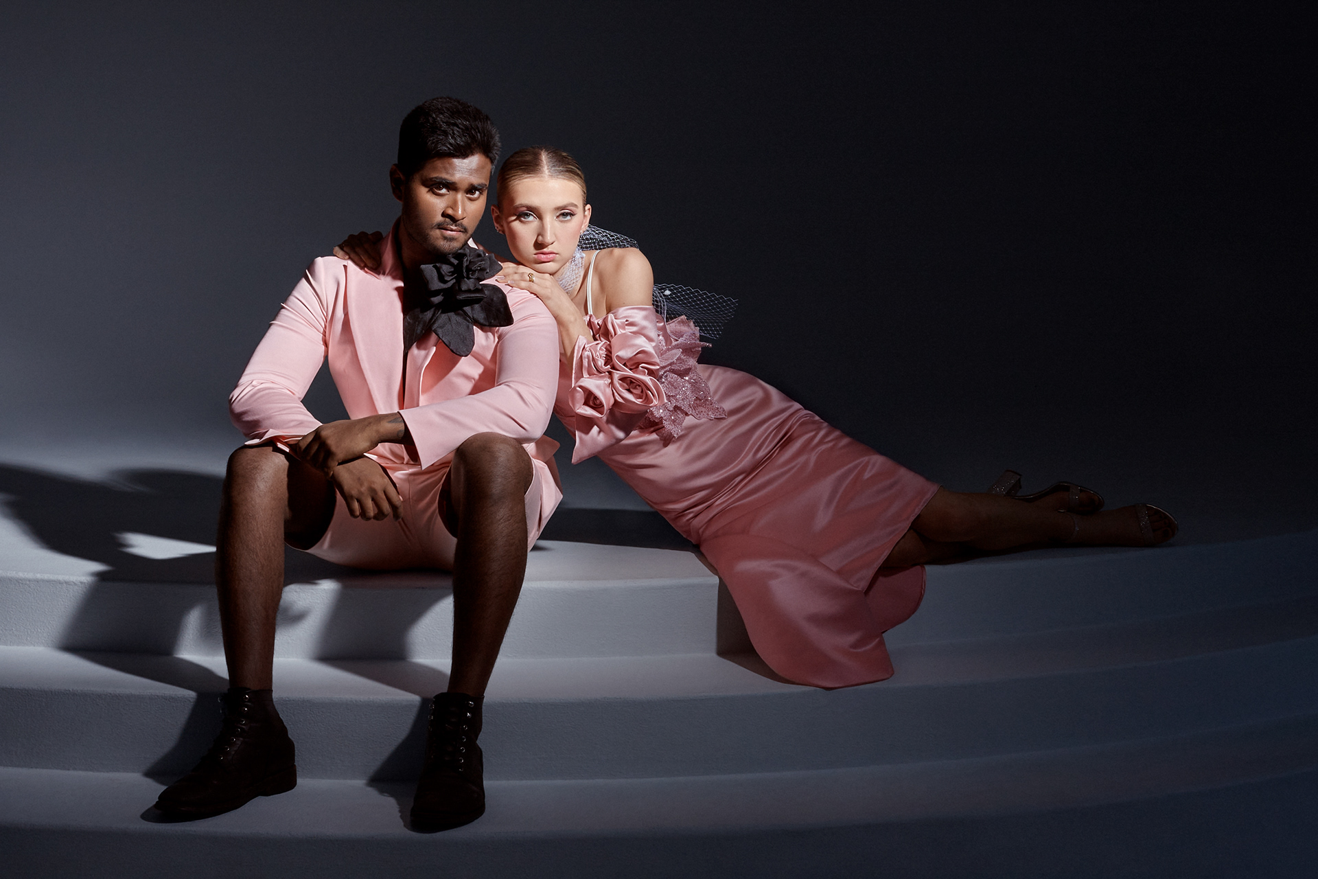 Retouching focused on fabric texture, light control, tonal contrast, and background perfection.