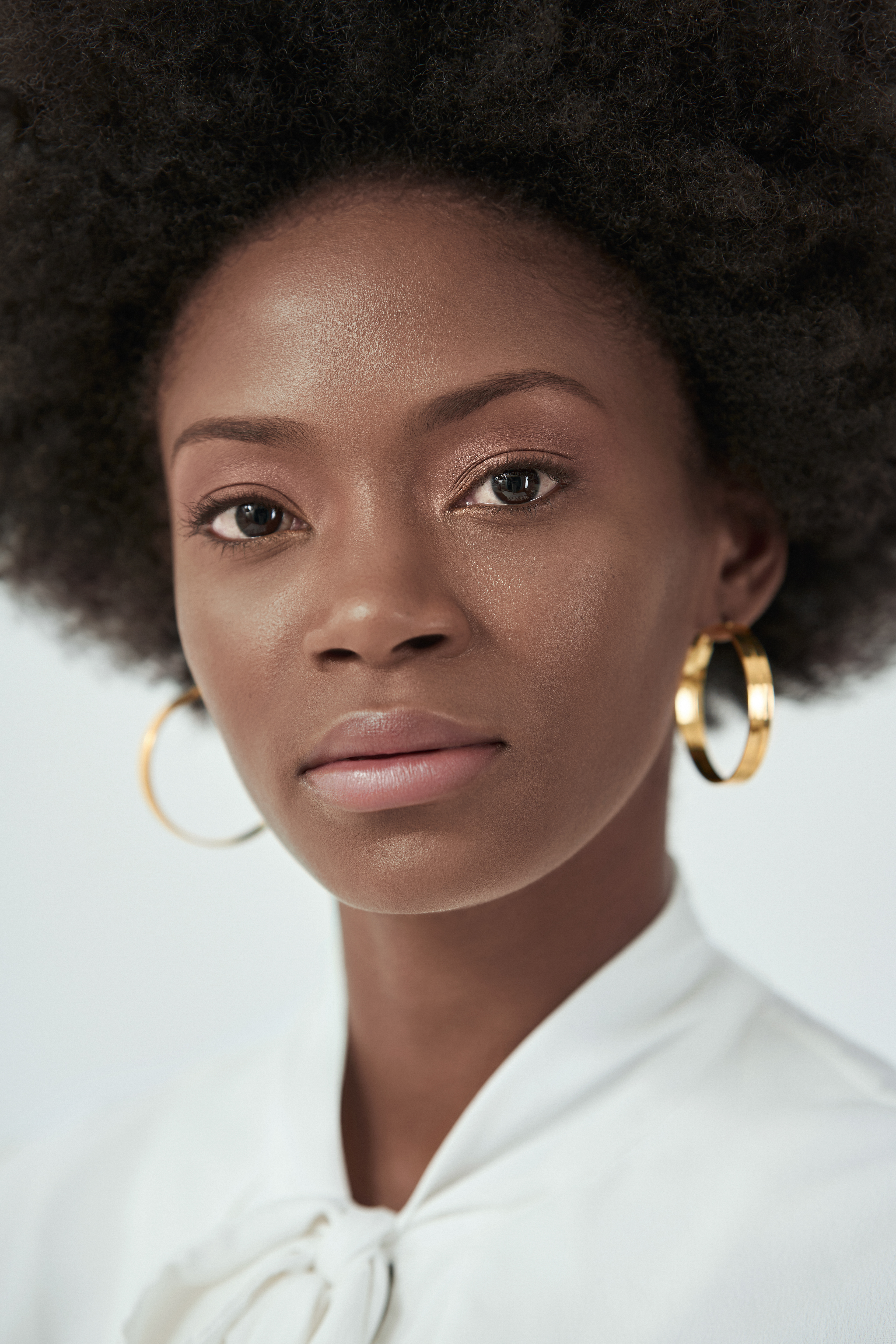 I focused on skin realism and kept the tones balanced, adding a cool tint to the highlights to make the gold accents pop against the clean, near-monochrome background.
